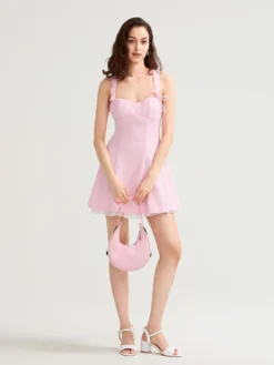Women??s Summer Corset Mini Dress Fashion Sleeveless Bow Tie Strap Solid Color Tank Dress for Party Elegant Casual Sundress