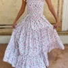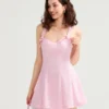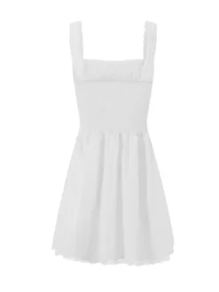 Womens Summer Flowy Dress Sleeveless Square Neck Tie-up Front Short Tank Dress Casual A-line Dress