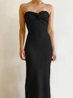 Women Y2K Knitted Long Dress Solid Color Strapless Bodycon Pencil Slit Tube Dress Summer Fall Sexy Elegant Chic Dresses Female
